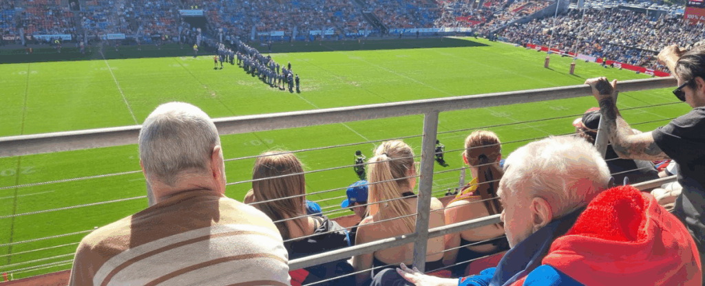 This footy season, Robbie and his fiancée Colleen embarked on an adventure to watch the Newcastle Knights play. With Ability Options staff member Darren helping organise everything from the NRL tickets to Robbie’s wheelchair, the day was set to be one for the books. After a two-hour road trip with a pit stop at McDonald’s for a quick lunch, they arrived at the stadium. Thanks to pre-booked parking right in front of the entry gates, getting to the seats was a breeze. The view from their seats was fantastic, and Robbie and Colleen settled in with chips, chocolate, and drinks.